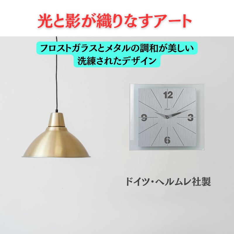 柔らかな光を纏うフロストガラスと、研ぎ澄まされたメタルの輝き。ドイツ名門が仕立てた、空間にモダンな静寂をもたらす掛け時計。