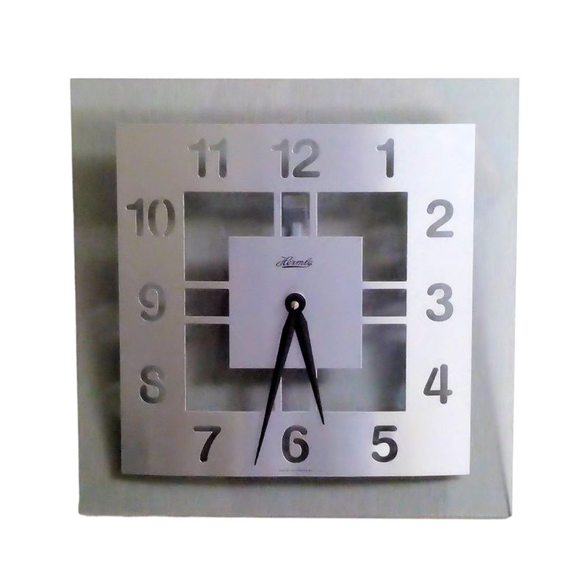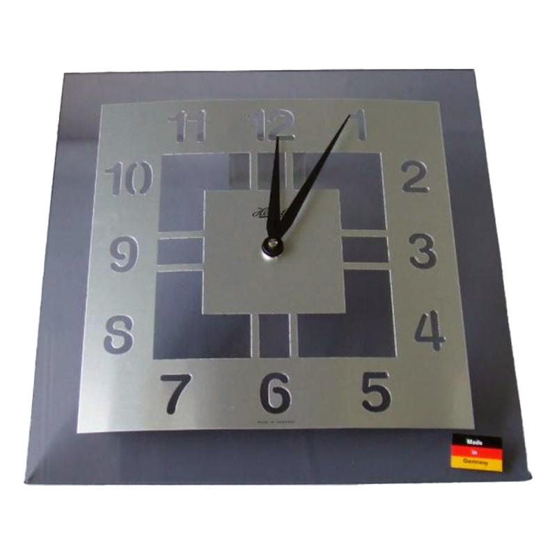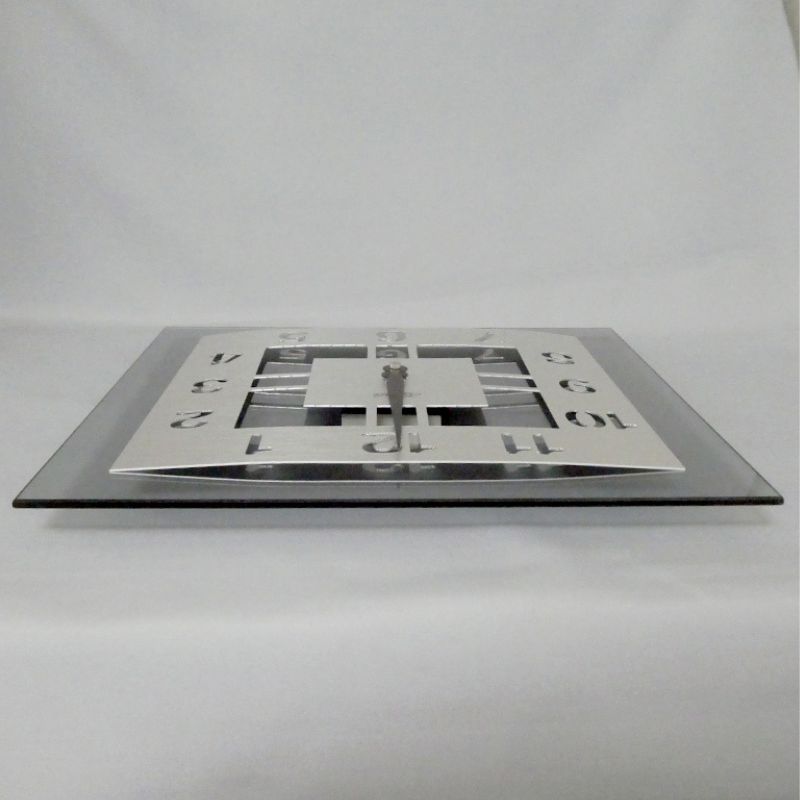 一切の過度な装飾を排し、直線的で端正な正方形(30cm角)のフォルムに仕上げられています。数字の抜け感を利用した文字盤のデザインは、壁紙の色や柄を美しく透過し、飾る場所のインテリアと見事に調和します。まるで現代アートのオブジェのように、空間全体をスマートに引き締める価値を持っています。