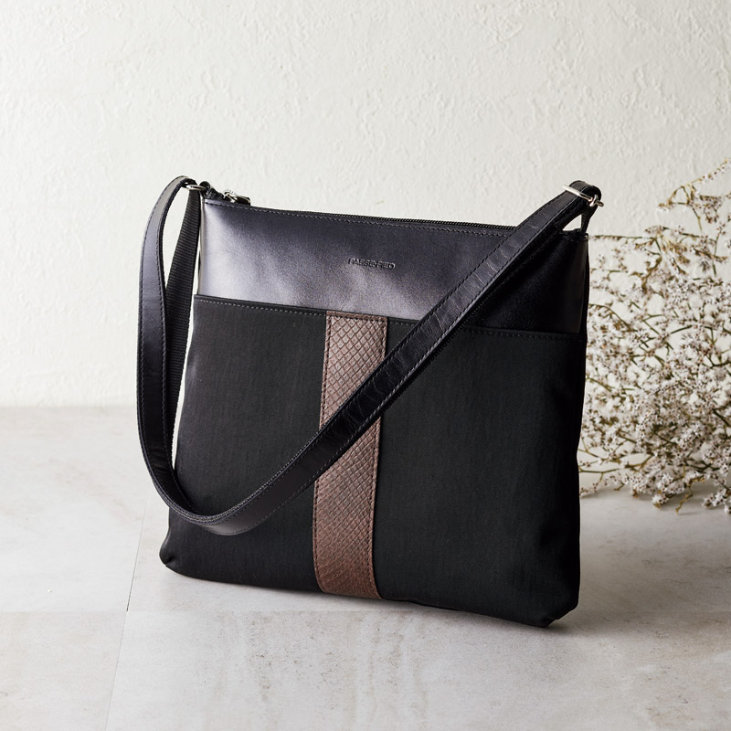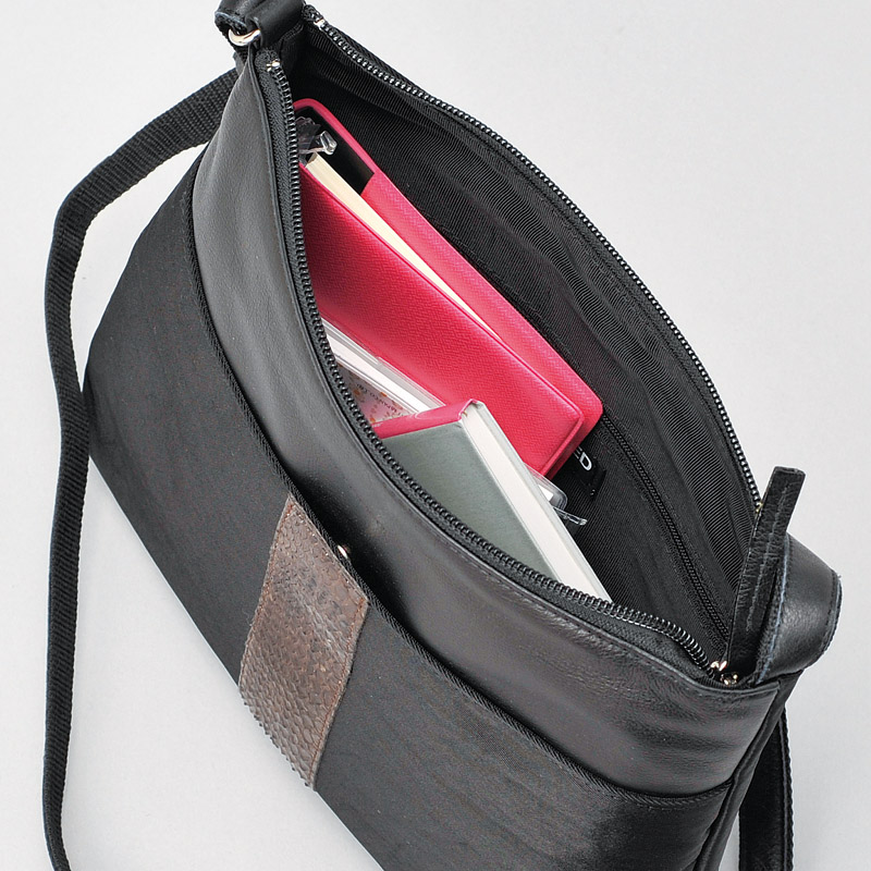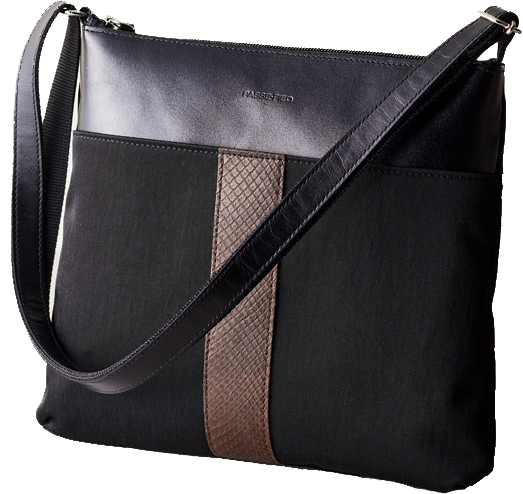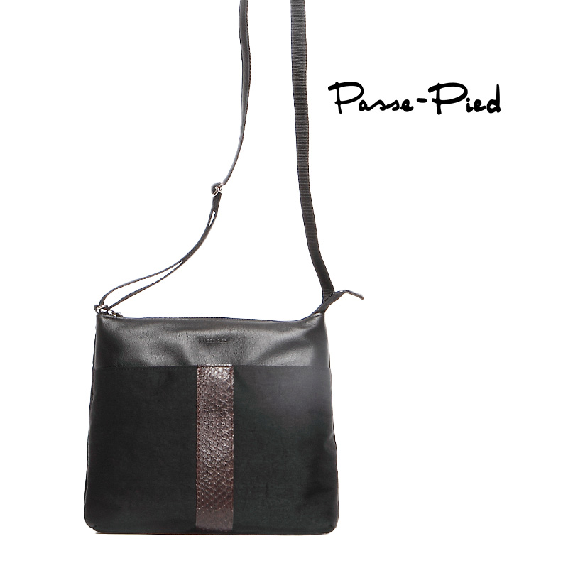 洗練されたフォルムに、前面にポイントとしてパイソン(ニシキヘビ)を使用した、ちょっと贅沢感のあるバッグです。