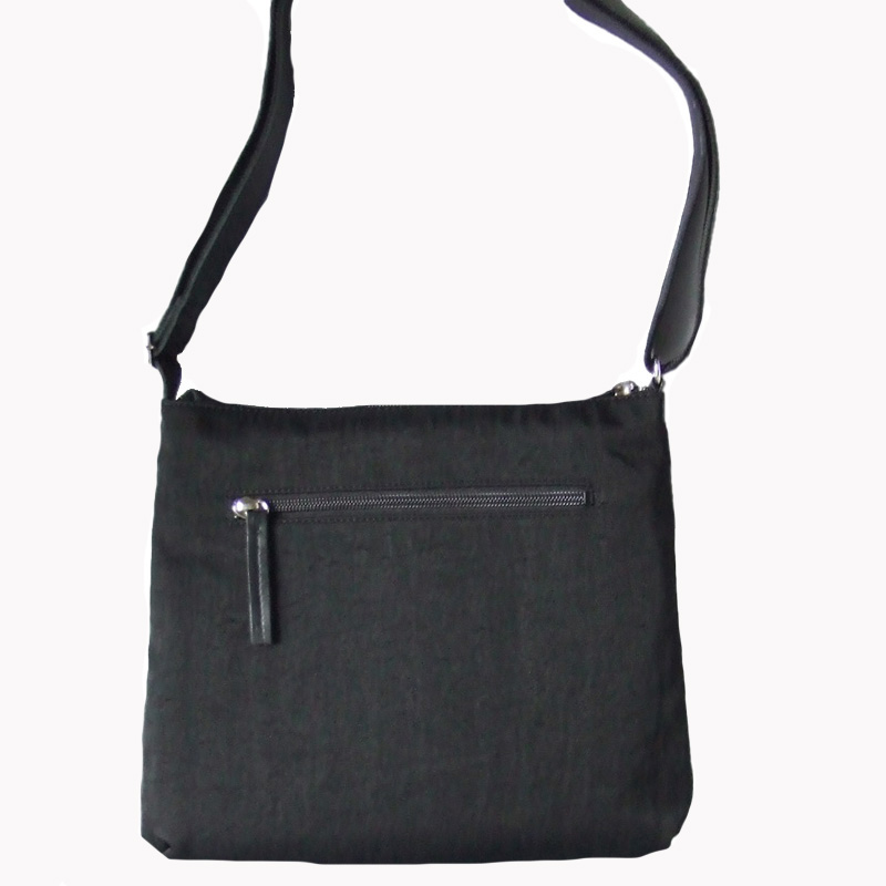 メイン素材のナイロンはシワ加工を施しています。カラーはブラックです。