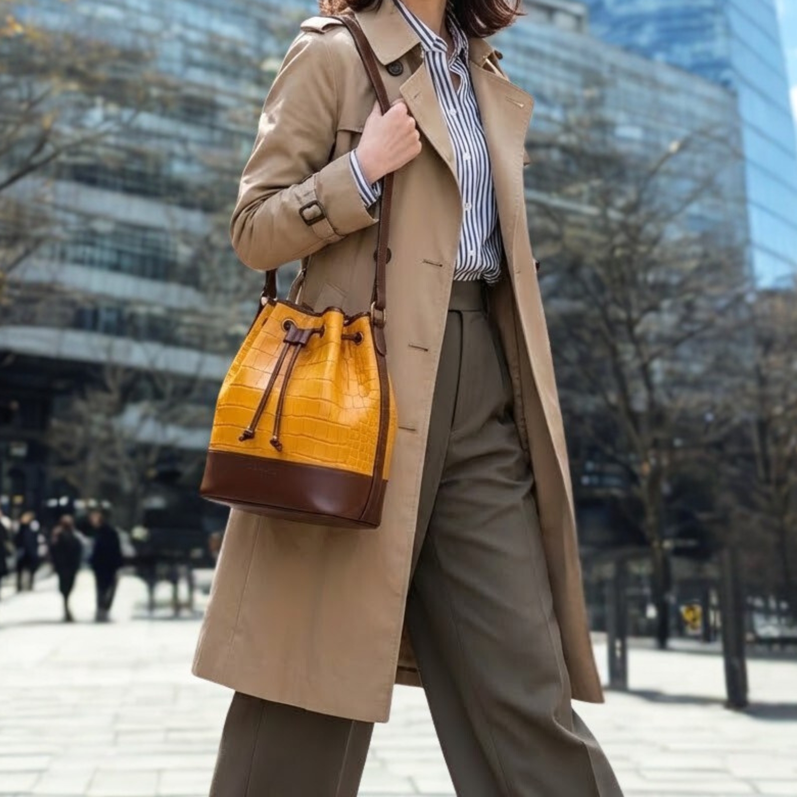 巾着型のデザインは幅広い用途に対応し、タウンユースはもちろん、休日のお出かけや旅行にも最適です。シンプルで上品なデザインなので、どんなコーディネートにもぴったり馴染み、大人のカジュアルスタイルを格上げしてくれます。