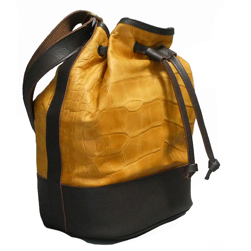 本体の牛革はクロコダイルの型押しが施されており、模様は各商品で異なります。柔らかい牛革なので、体へのあたりが優しく快適です。