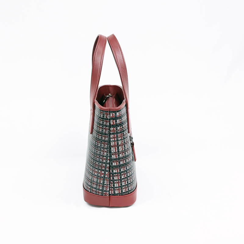 チェック部分はチェックメッシュ風型押しに、職人手作業により1本1本ライン引きしています。そのためチェック柄模様は商品によって異なり、同じものはありません。