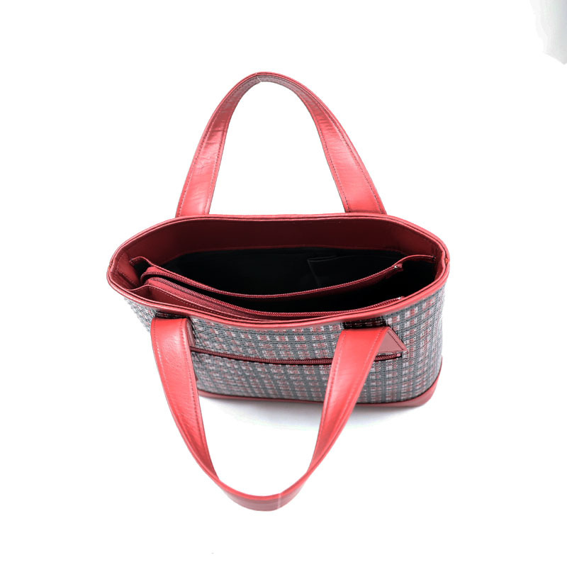| ●機能 | 内:アオリポケットx2、ファスナーポケットx1、オープンポケットx2、外:ファスナーポケットx1,開閉ファスナー式、持ち手立上り約14cm |