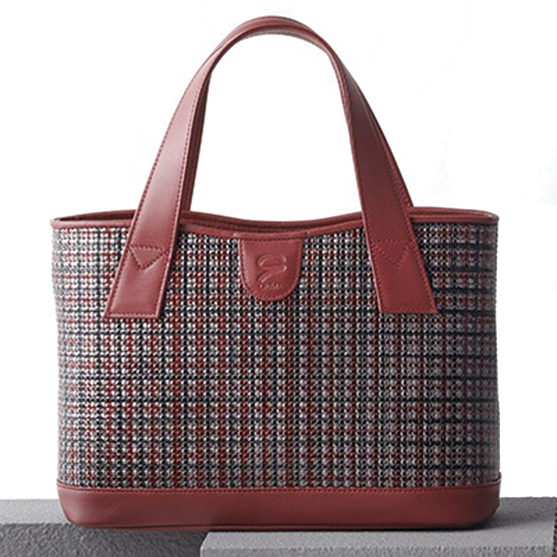 牛革はチェックとスムースの革の組み合わせがオシャレ感を出しています。