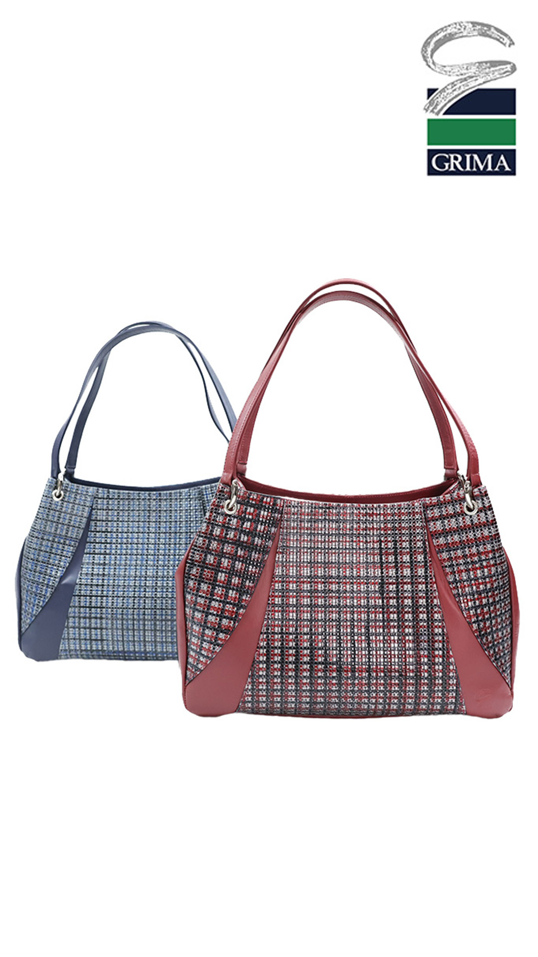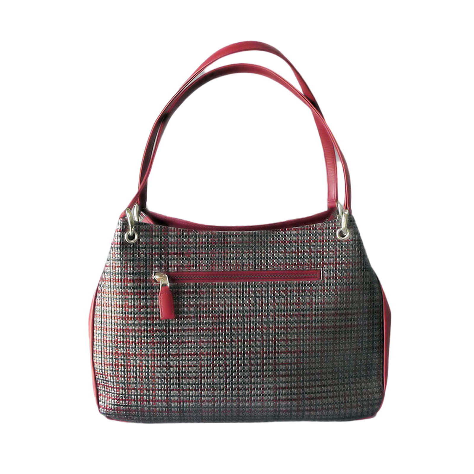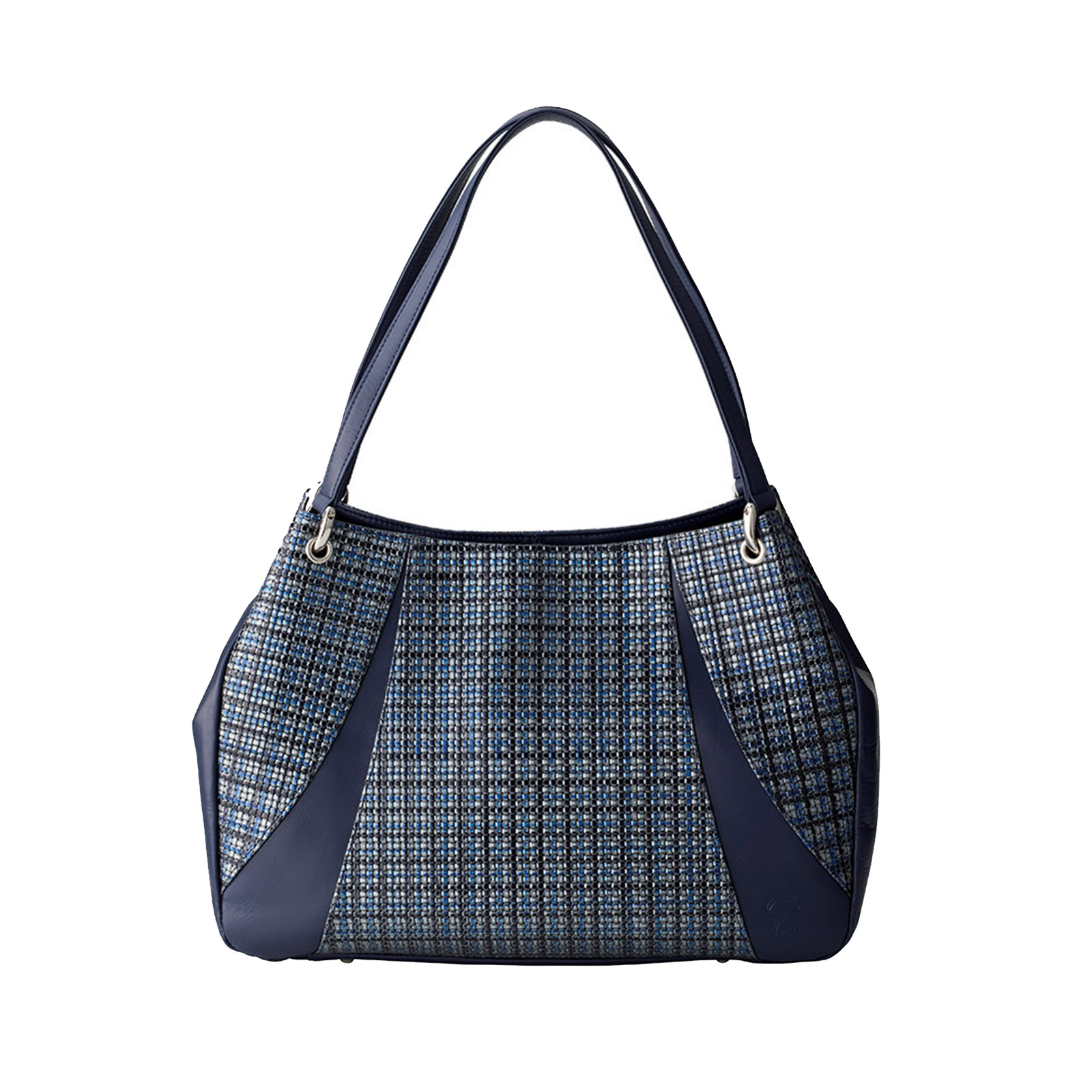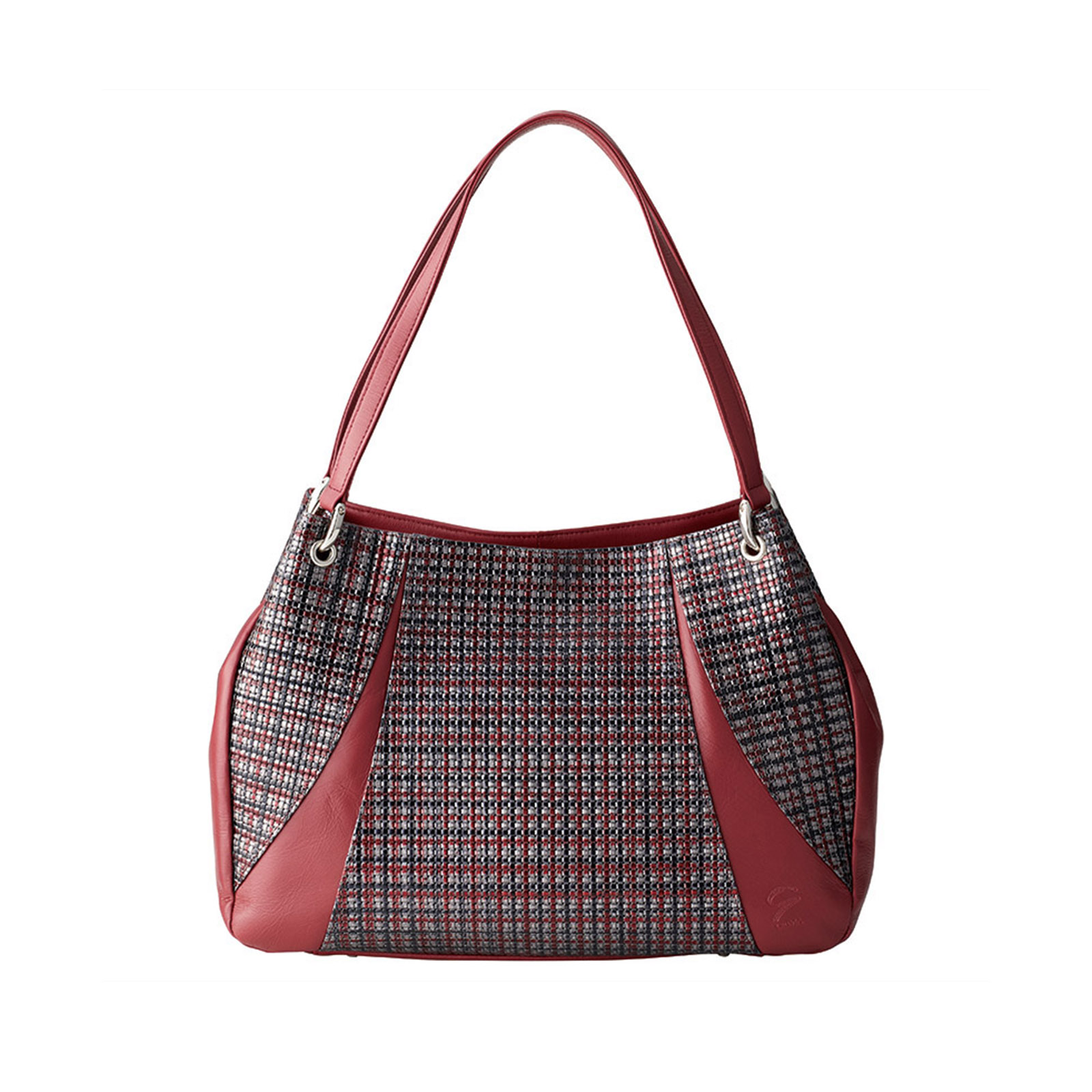 ・ チェック&スムースレザーの絶妙なバランス:編み込み風のチェック模様がオシャレ感をプラス
