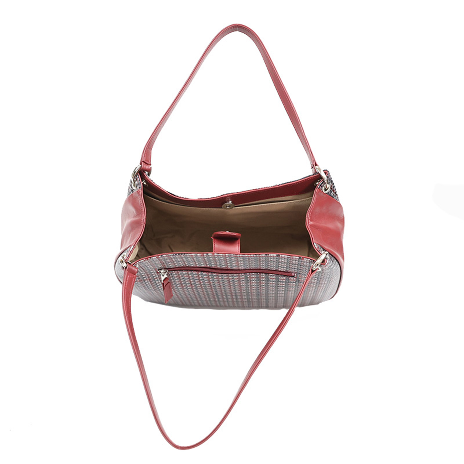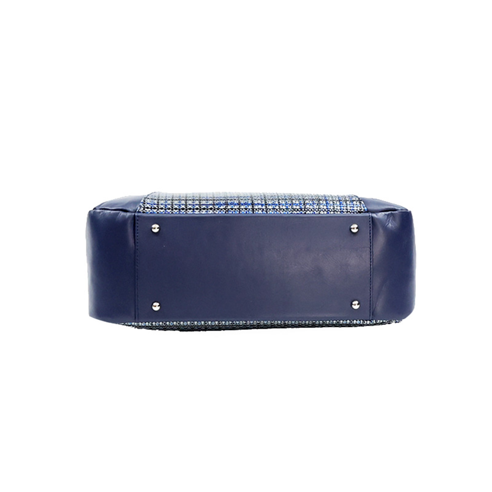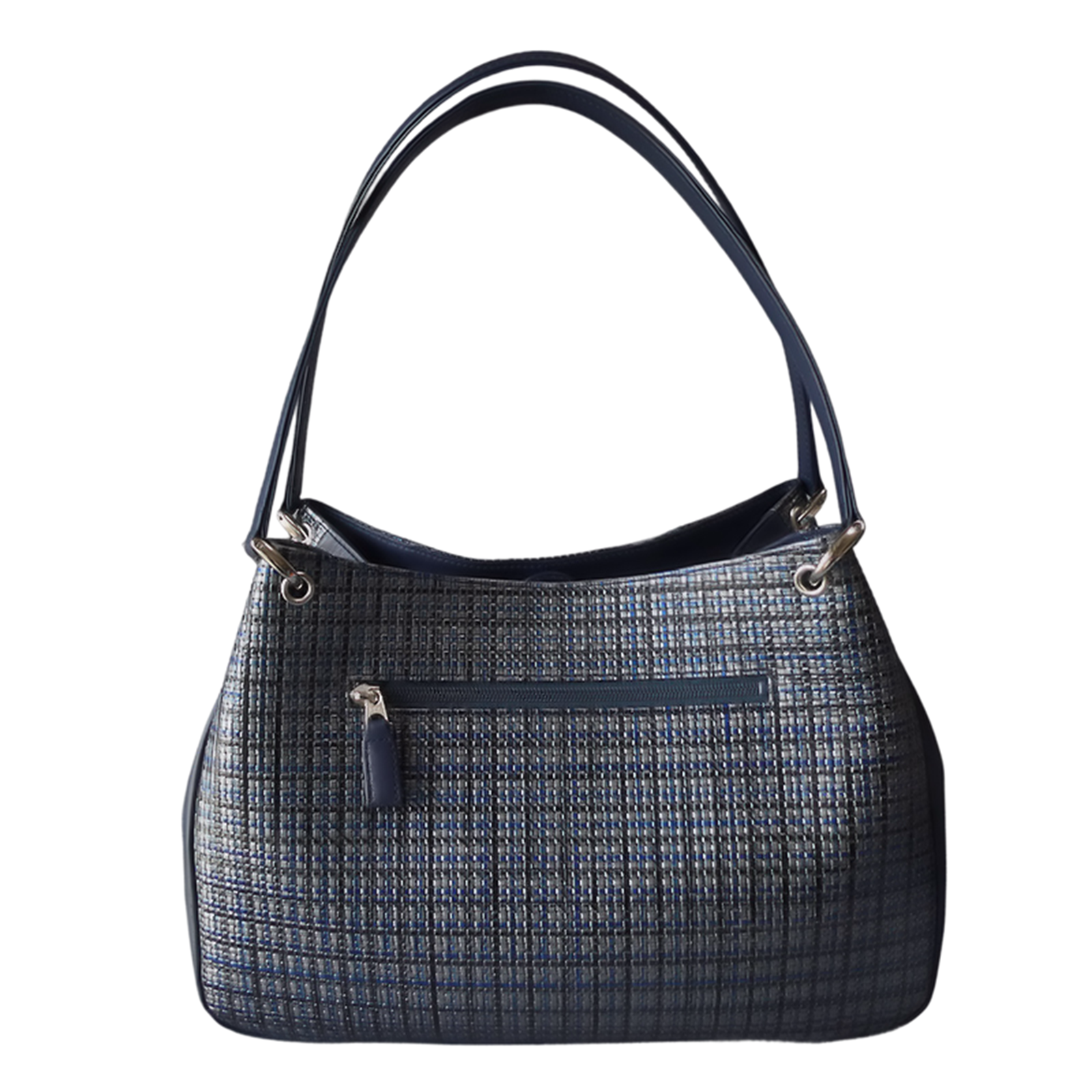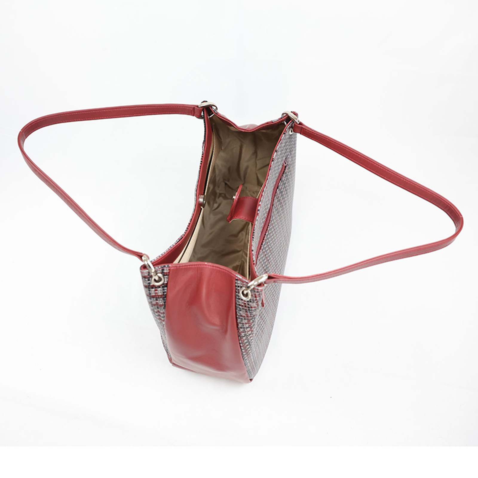 ・ チェック&スムースレザーの絶妙なバランス:編み込み風のチェック模様がオシャレ感をプラス