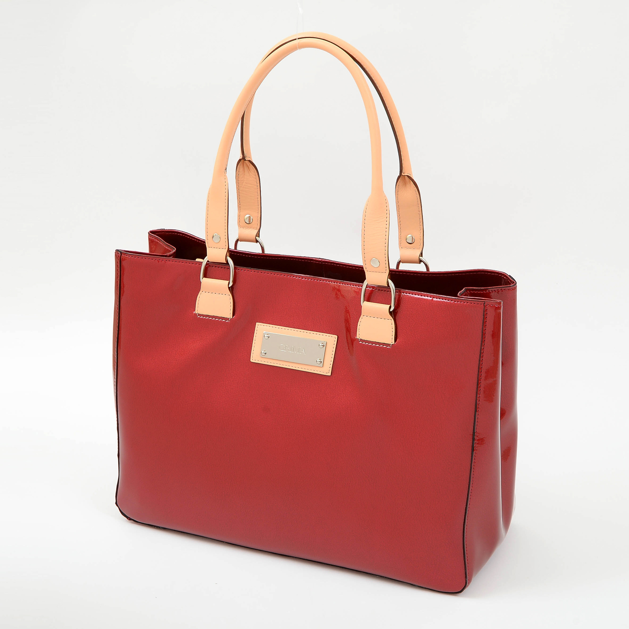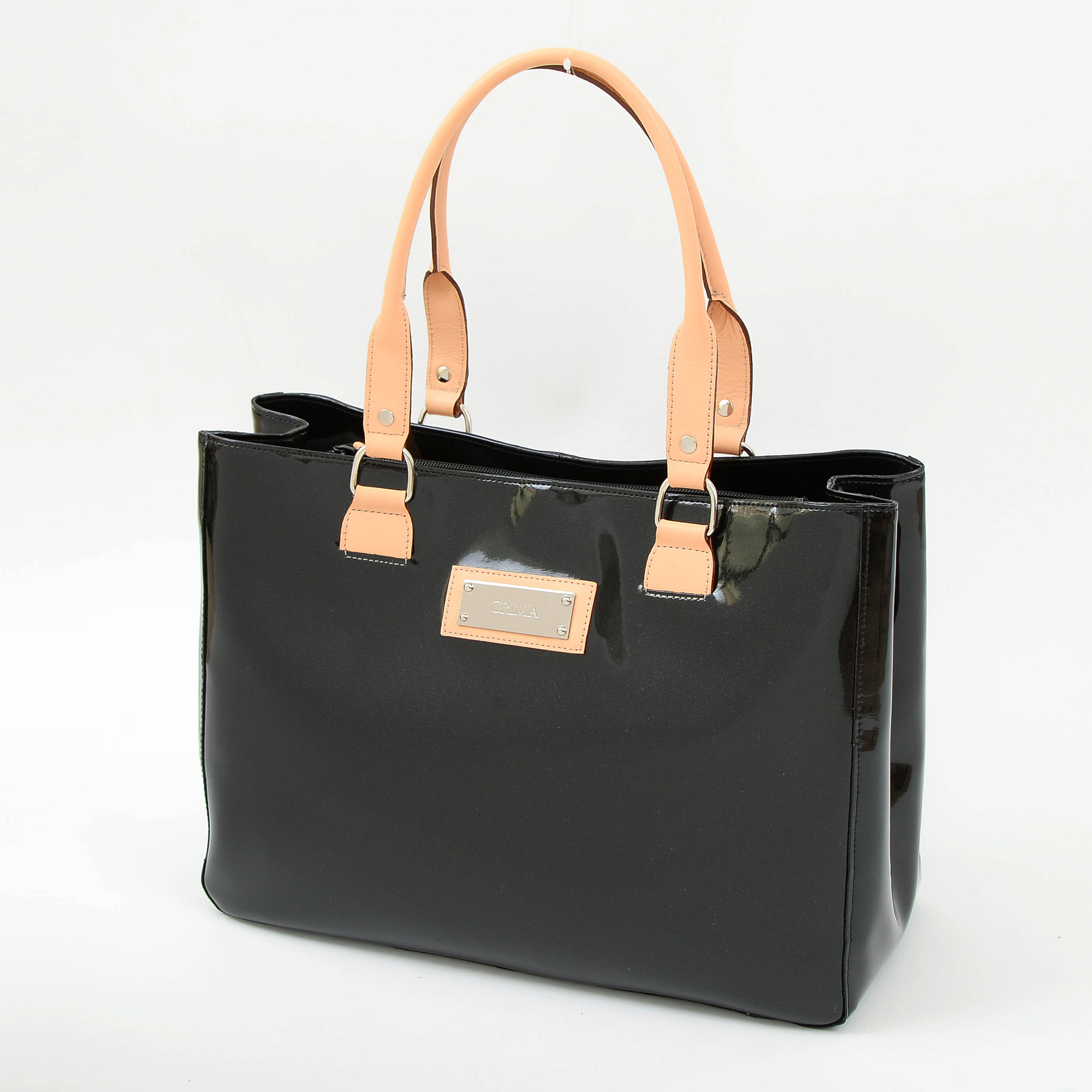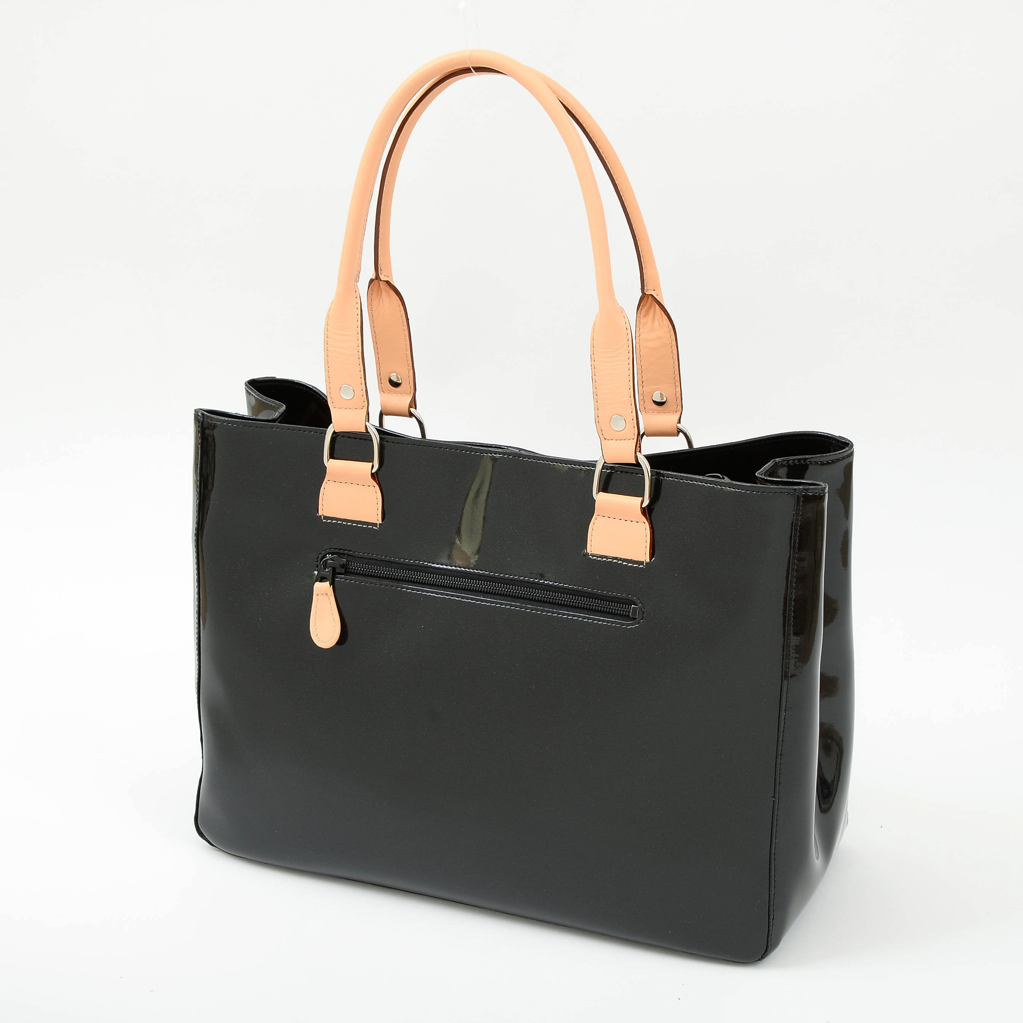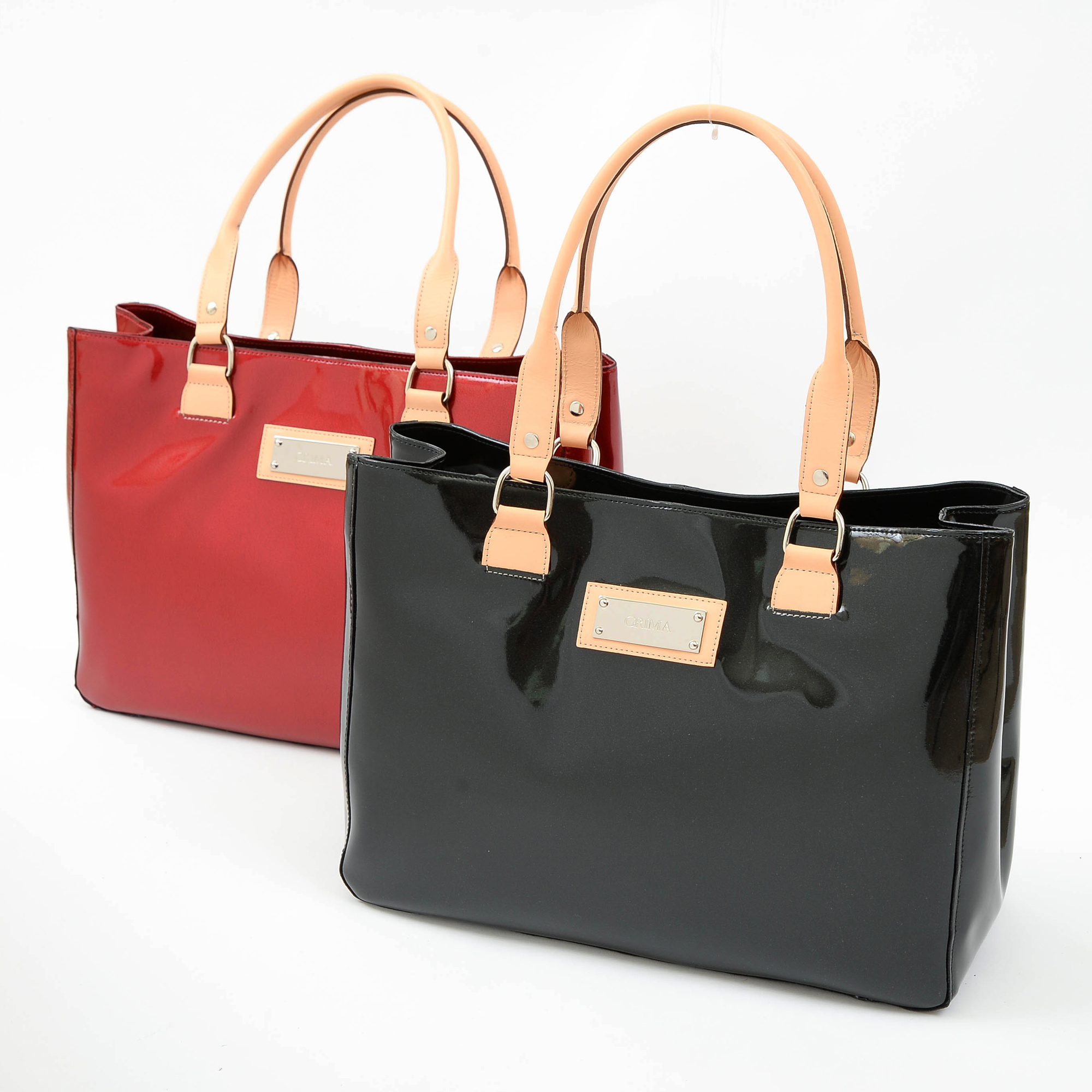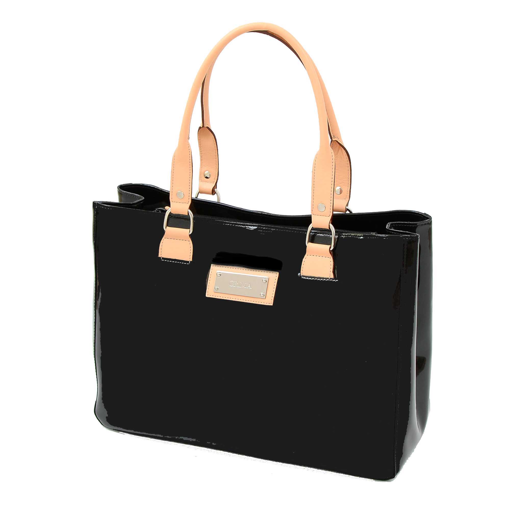 エナメル(合成皮革のエナメル加工)と明るい色(生成り)の牛革のコントラストがオシャレ。