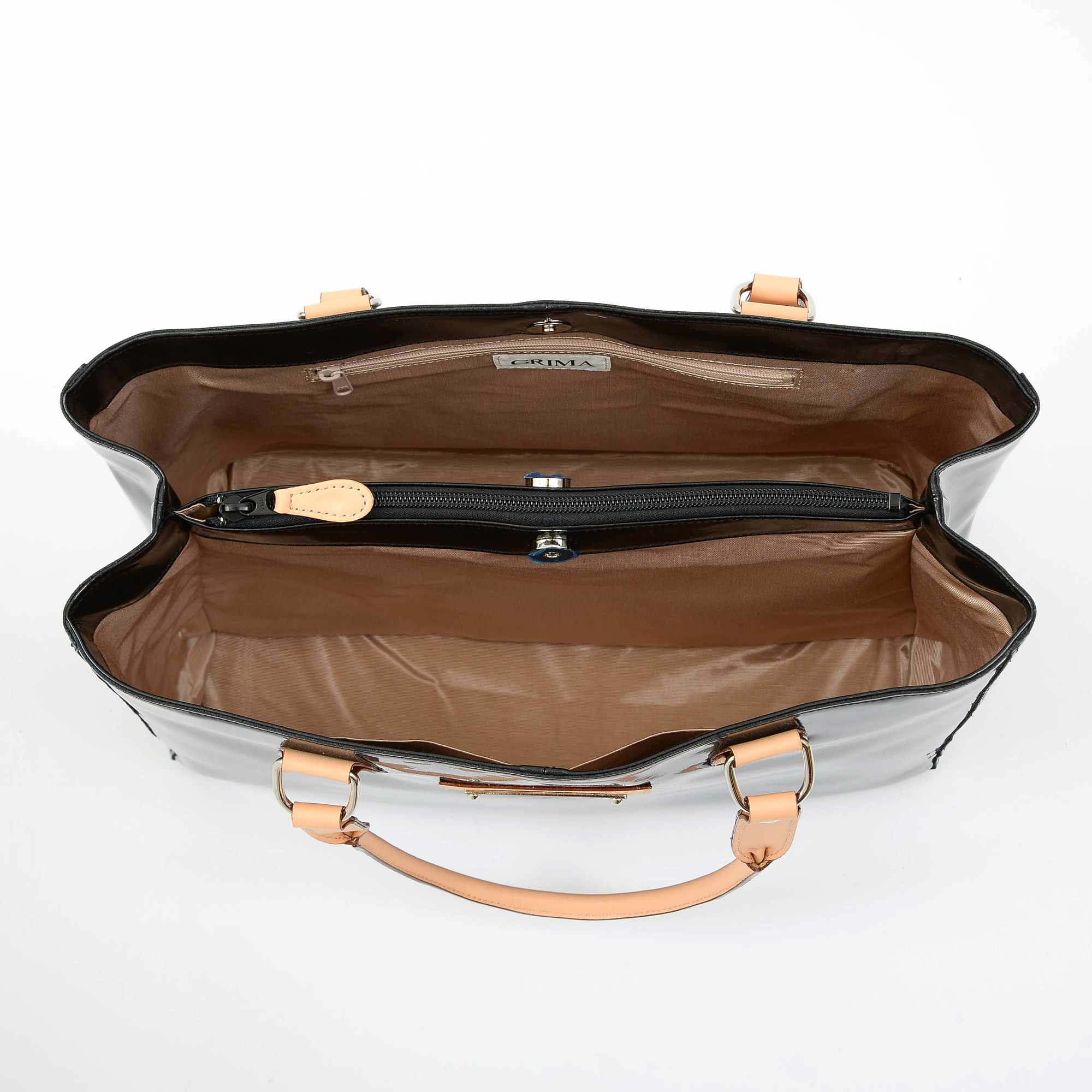 内側は、バッグの中の物が探しやすいように明るい色(ベージュ)のレーヨン生地を使用しています。