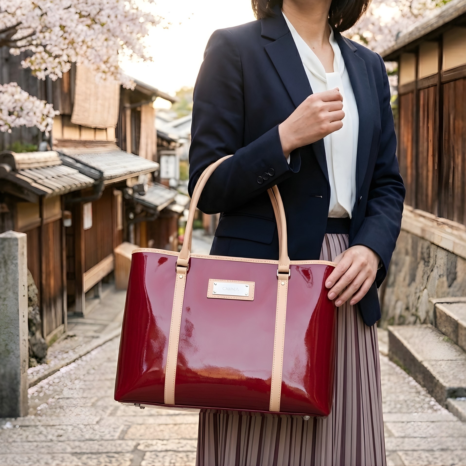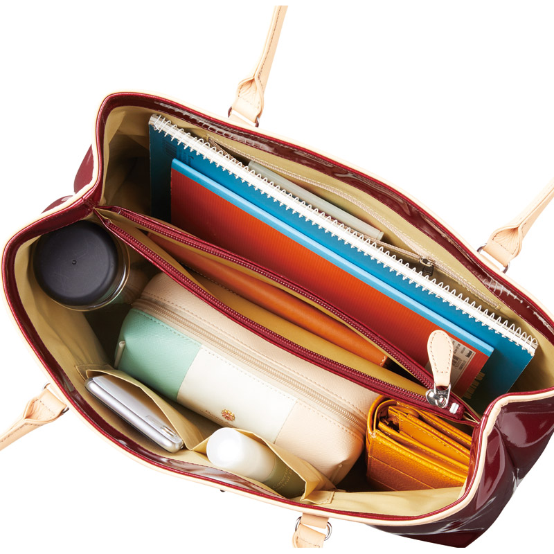 艶やかなエナメルと、しっとりとした牛革が織りなす、洗練された佇まい。グリマのショルダートートバッグは、単なる「モノ」ではなく、持つ人の日常を豊かに彩る「体験」をお届けします。日本の職人が丹精込めて仕立てた逸品は、使うほどに愛着が増し、あなただけの特別な存在へと育っていくでしょう。