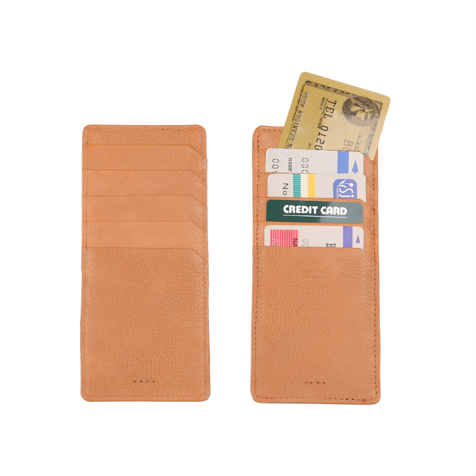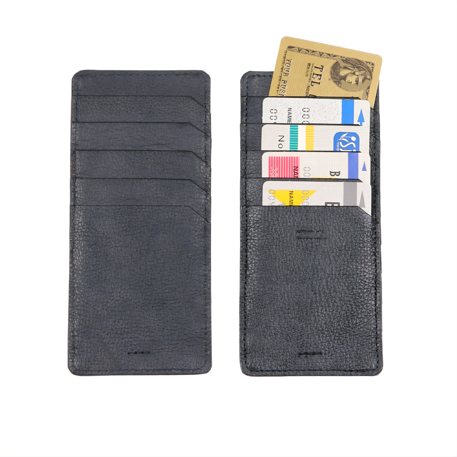 表と裏にそれぞれ5室ずつ、計10枚のカードを収納可能。カードを両面に分散させることで一箇所に厚みが偏るのを防ぎ、スマートなフォルムを保ちます。お手持ちの長財布のインナーケースとしてはもちろん、ジャケットの胸ポケットやミニバッグに入れてもシルエットを崩しません。