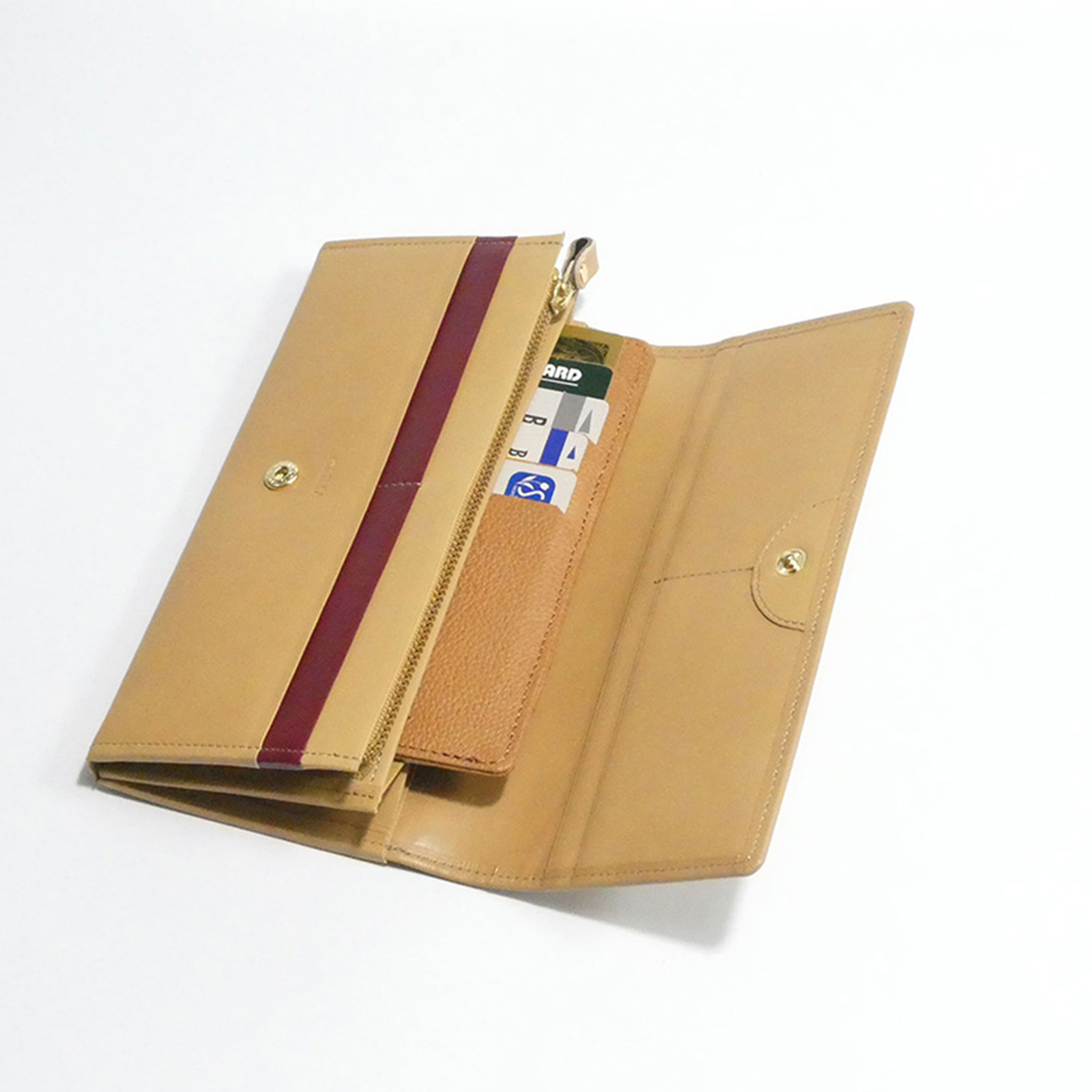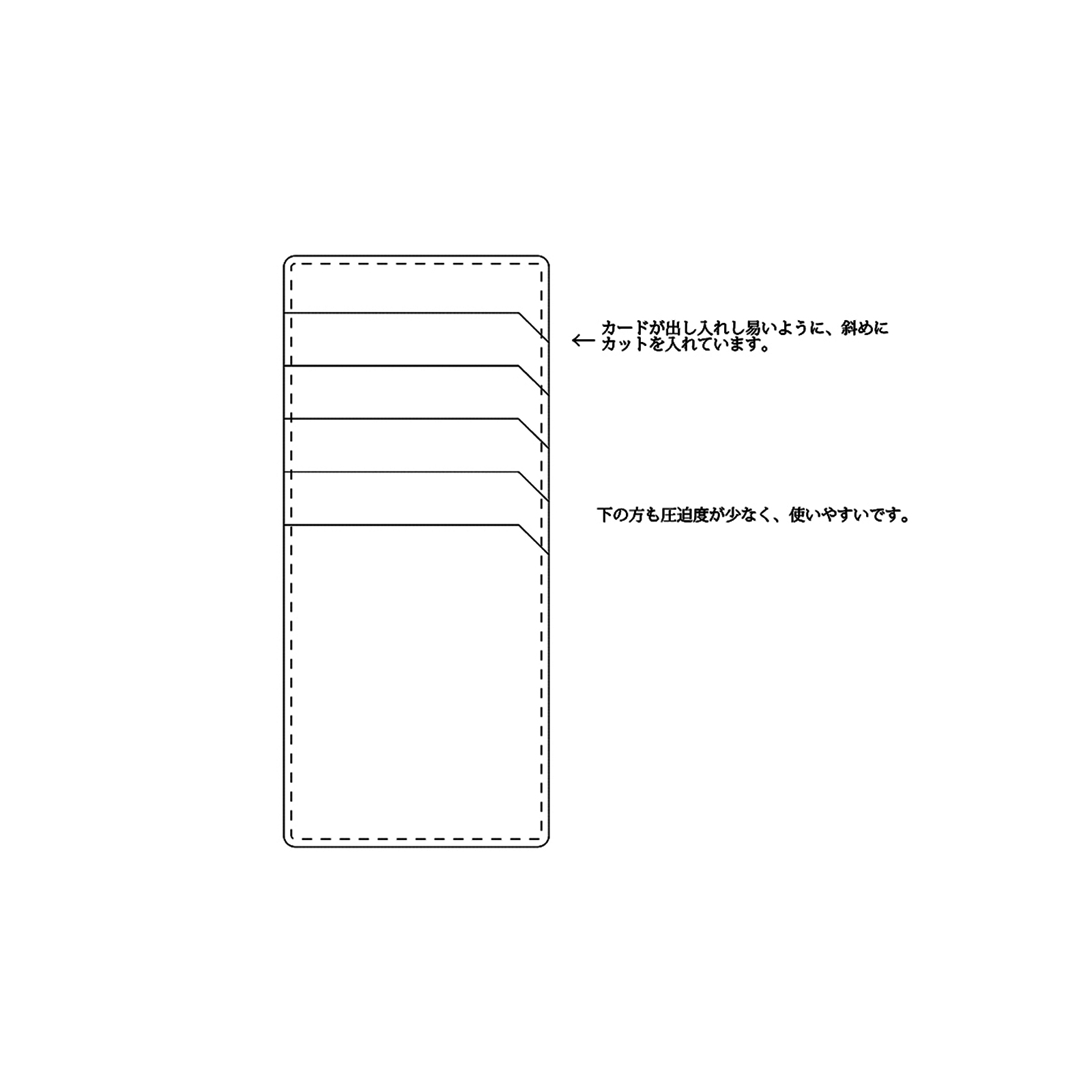 カードポケットの片側には、端から端まで独自のカットを施しています。これによりカードの出し入れが驚くほどスムーズに行えるだけでなく、一般的なクレジットカードより少し大きめの変形サイズのカードにも対応。美しさだけでなく、日常の使い勝手にも徹底的にこだわりました。