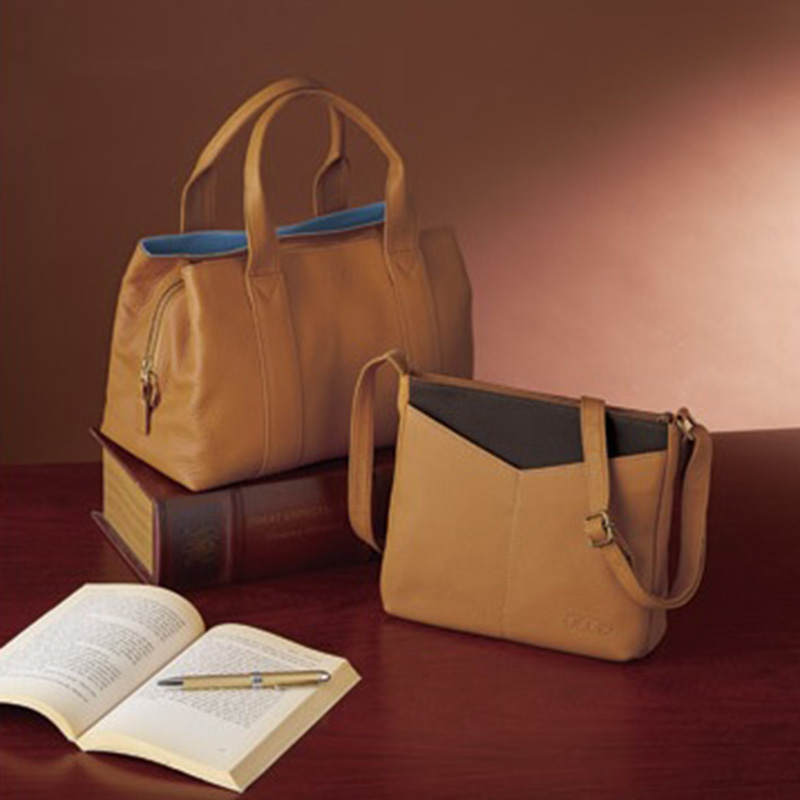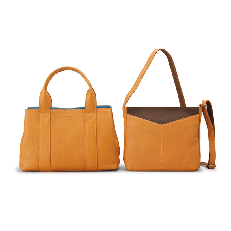 ショルダーバッグは斜めがけも出来ます。。シンプルなフォルムながらも小物の収納性に優れています。帆布と牛革のコンビネーションがオシャレ感をプラス。