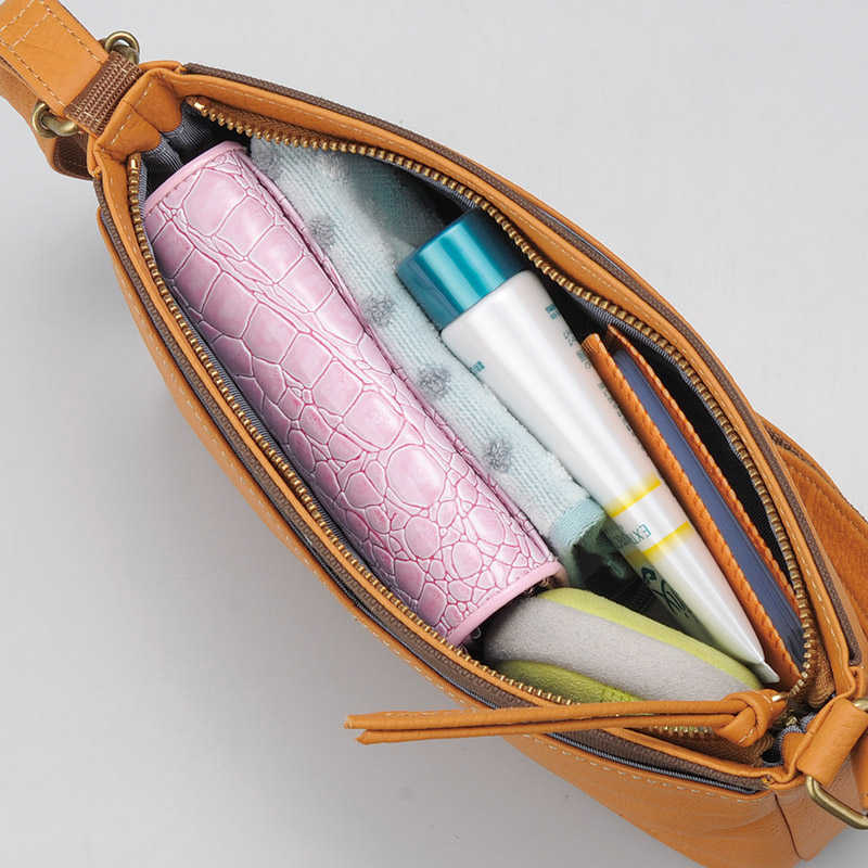 | ●機能 | ファスナー開閉式。内ファスナーポケットx1、内オープンポケットx2・外マグネット付ポケット・オープンポケット×各1。ショルダーベルト(長さ約70~130cm)着脱不可(長さ調節可)。 |