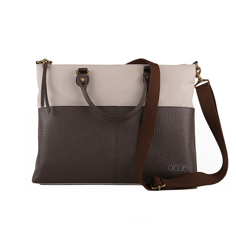 こっくりとした深みのある「チョコ」色の牛革と、柔らかな風合いの綿帆布。この対照的な素材を緻密に組み合わせることで、洗練された「大人の抜け感」を表現しました。手に触れるたびに感じる上質な本革の質感と、使い込むほどに味わいが増すキャンバス地。性別や年齢を問わず、あらゆるスタイルに溶け込むタイムレスな美しさがここにあります。